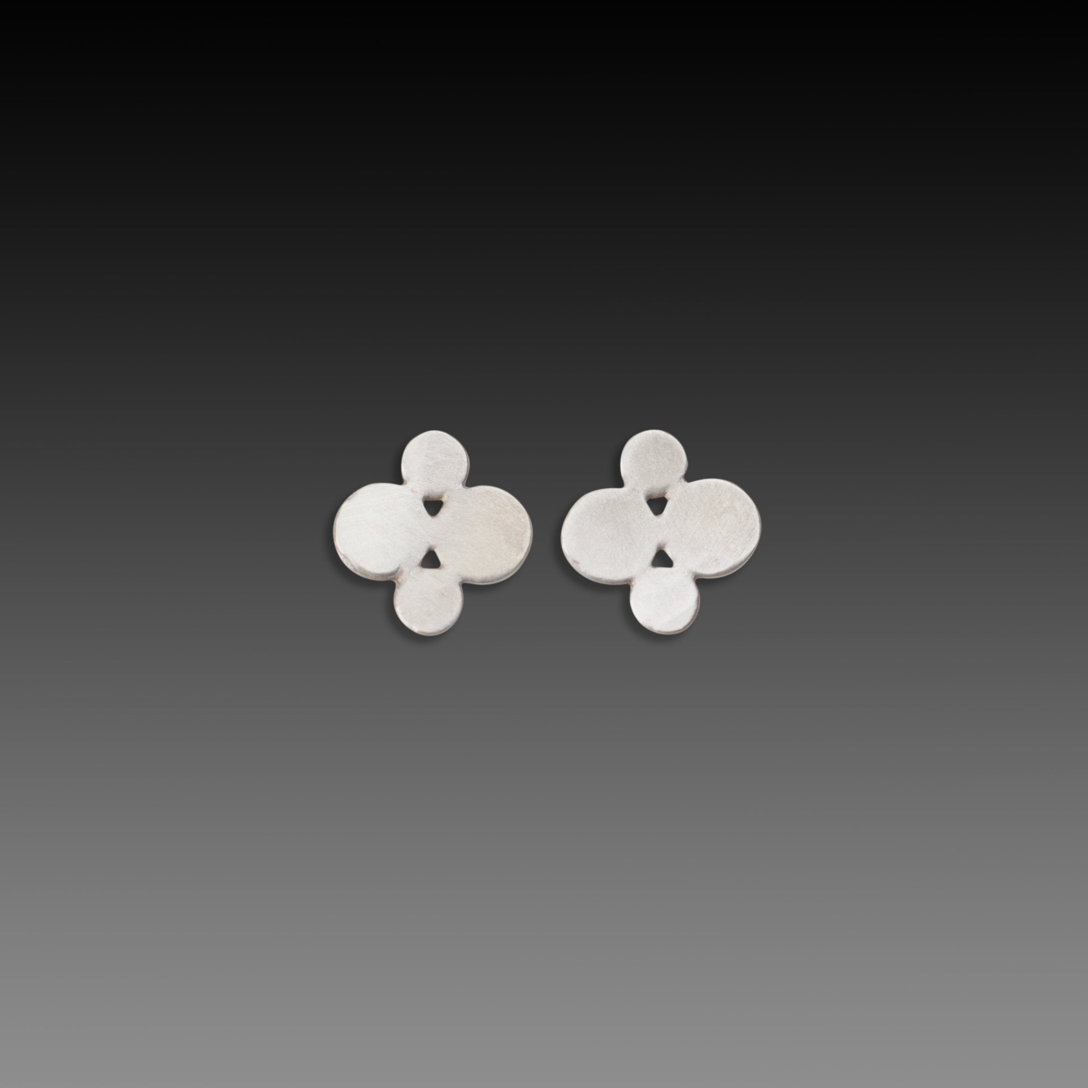 These stud earrings feature four small hammered disks nestled perfectly together. Simple and sweet everyday earrings and a lovely addition to your jewelry collection.