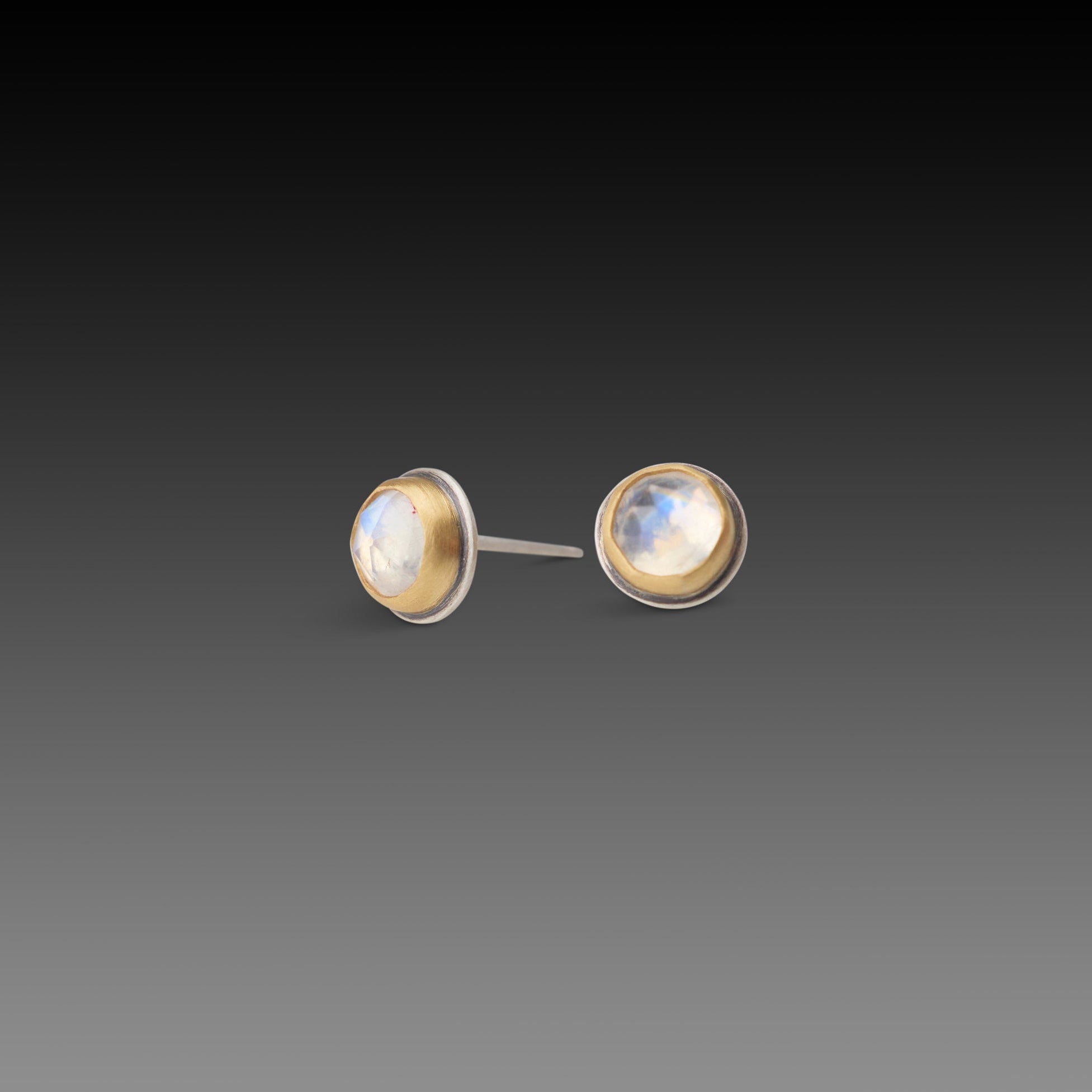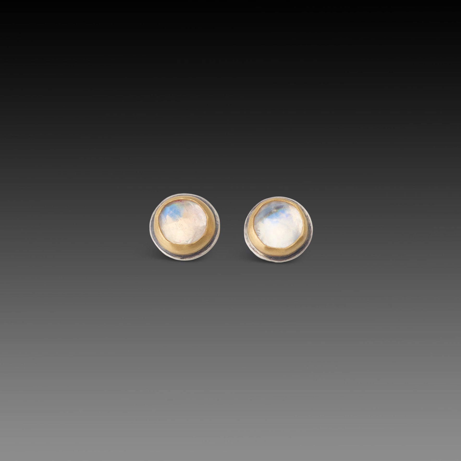 Hints of many colors illuminate these glowing marquise moonstone earrings. Set in bezels of 22k gold backed with sterling silver. Delicate and elegant.