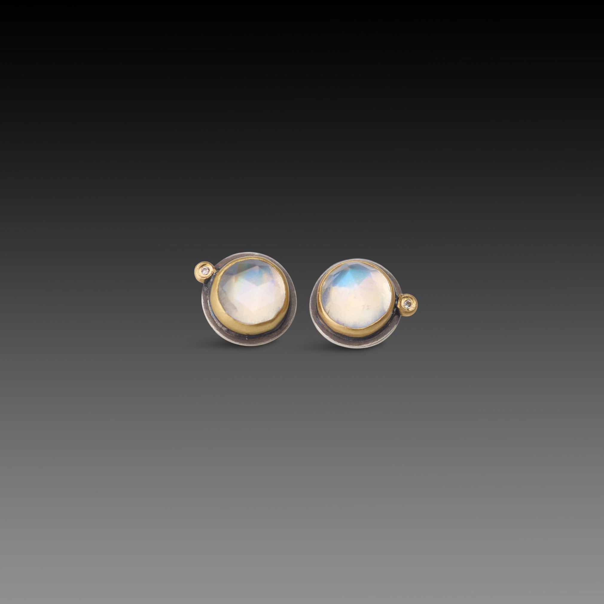 Moonstone Stud Earrings with Diamond Dot