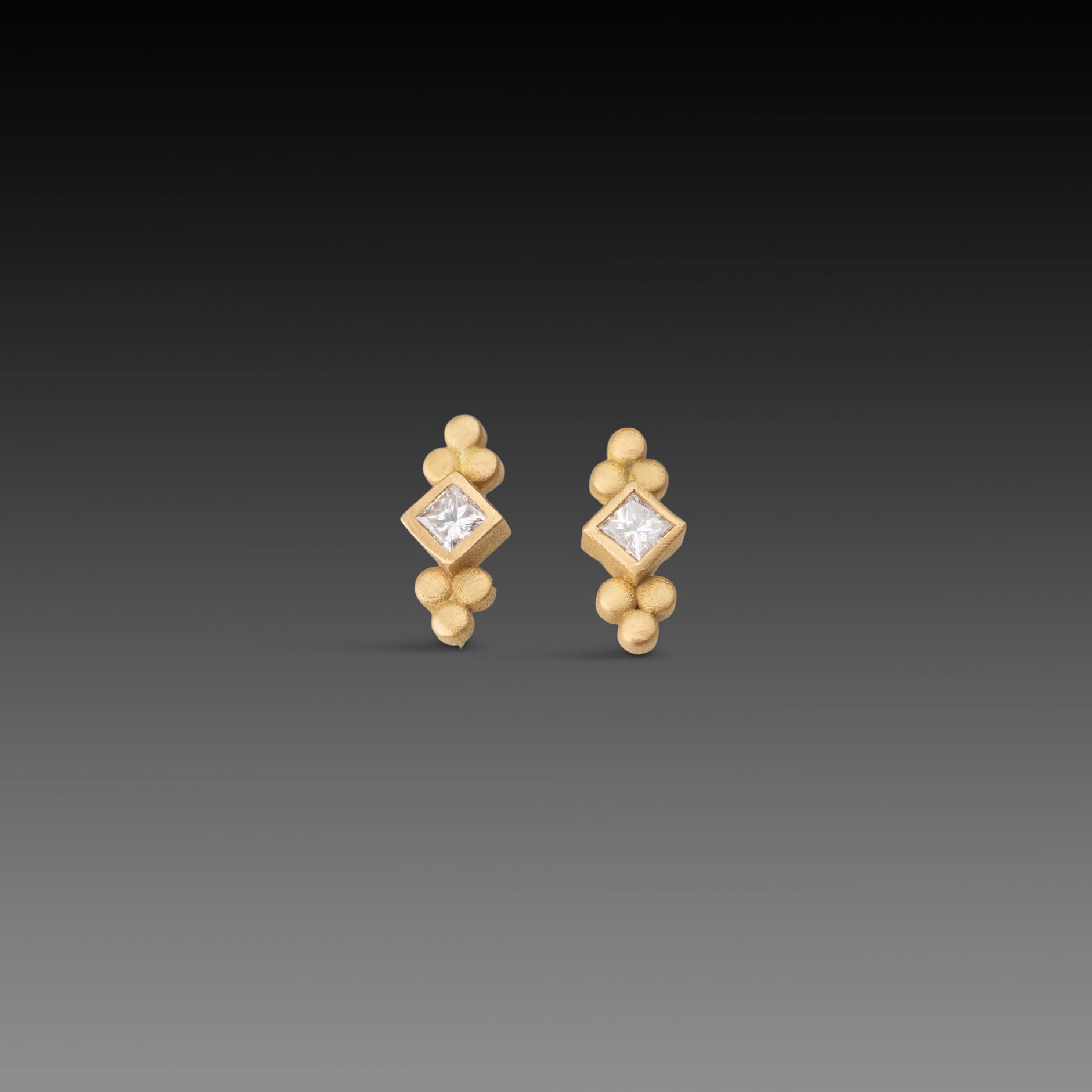 Earrings measure approximately 8.5mm in length. Matte finish.