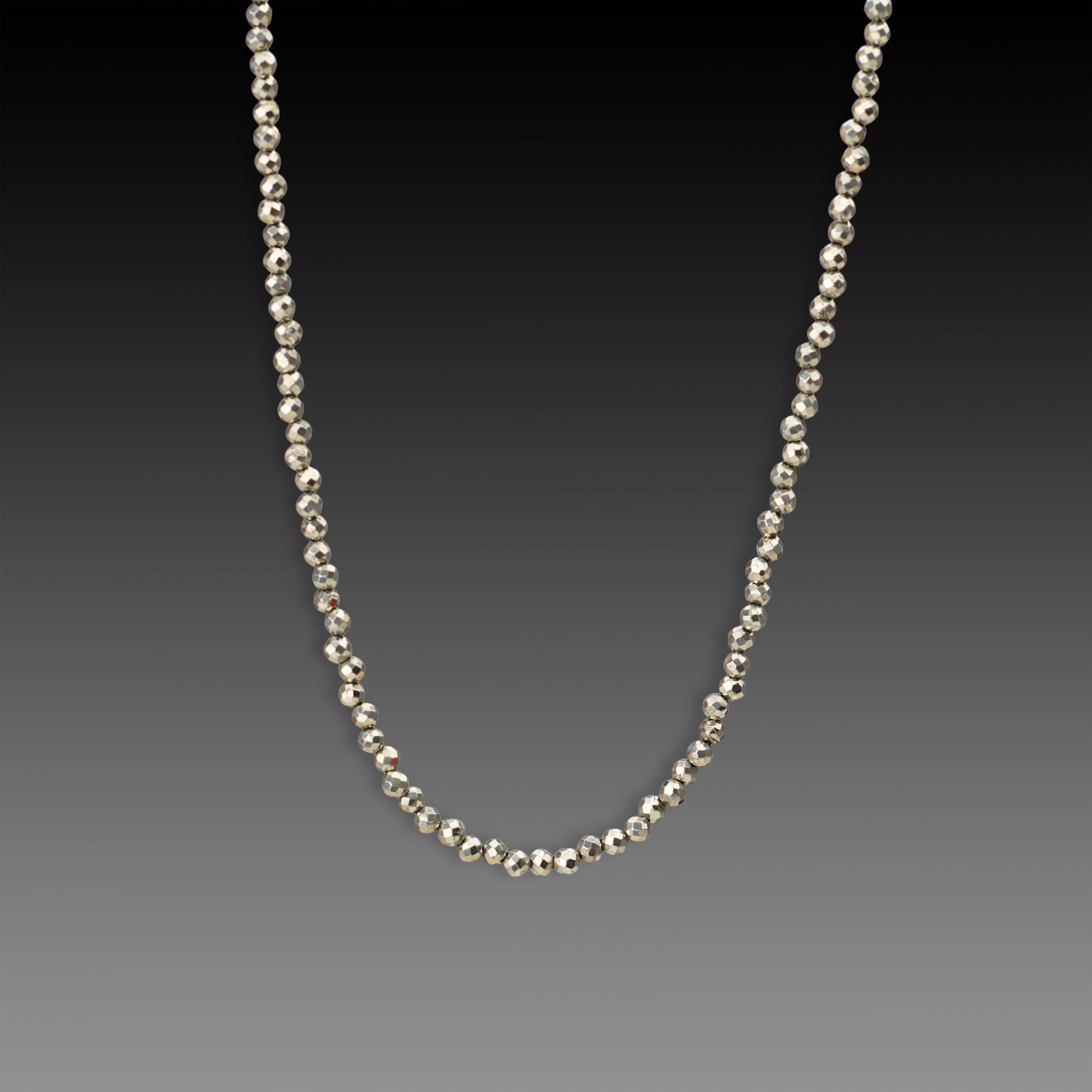 A strand of faceted pyrite beads sparkle and shine. Add some sparkle to every day, or a special occasion.