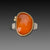 Carnelian stone measures approximately 1/2 inch x 3/4 inch. 4mm hammered sterling silver band with a matte finish.