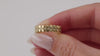 Two rows of hammered 18k dots are accented with a a row of tiny, sparkling white diamonds in this delightfully elegant band. This ring makes a lovely wedding band, and can be worn alone or combined with others to form a stunning stack.