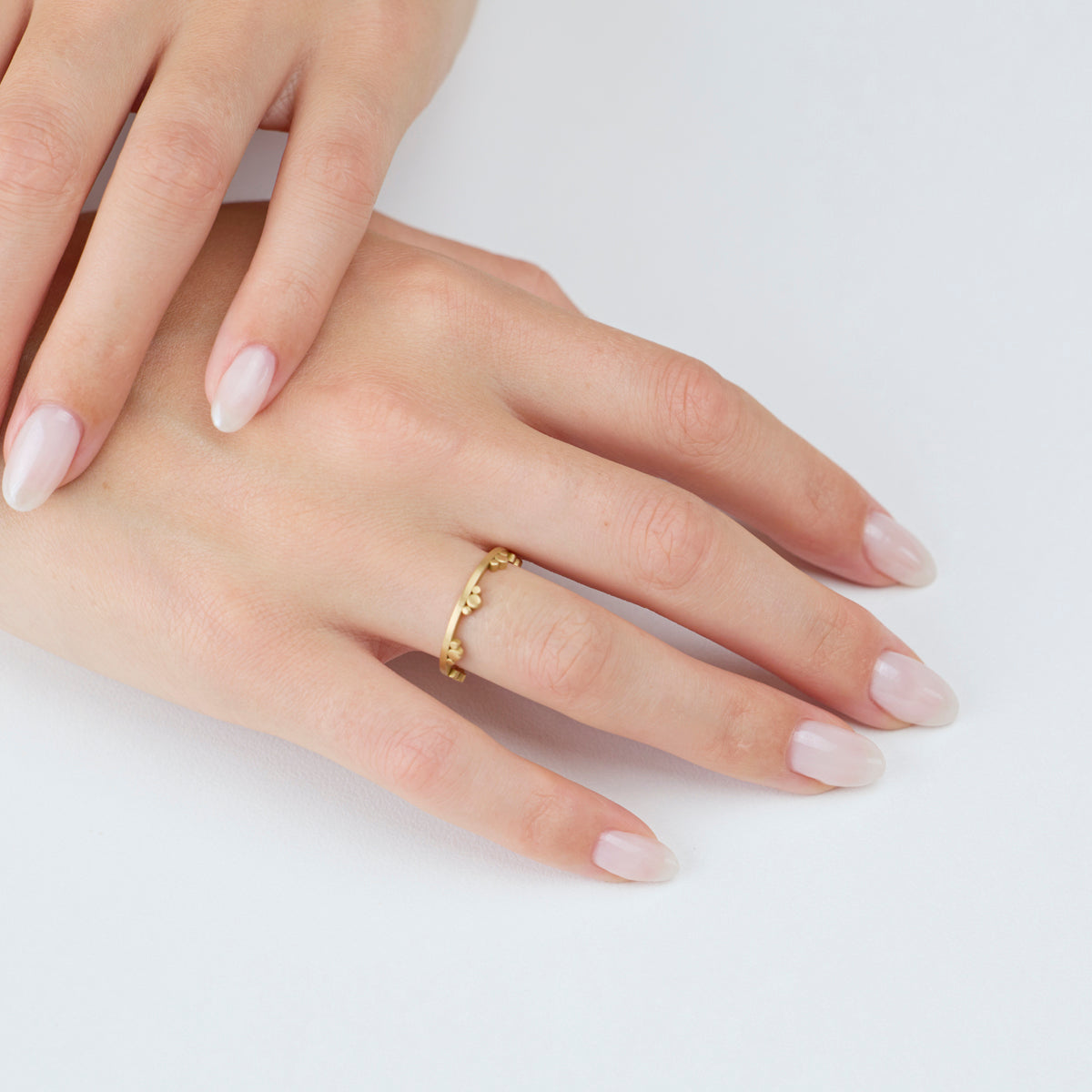 A delightful ring with seven trios encircling the band. A wonderful option for wedding or special occasion ring, this ring stacks beautifully with other rings. Band is 1mm with 1mm trios. Matte finish.